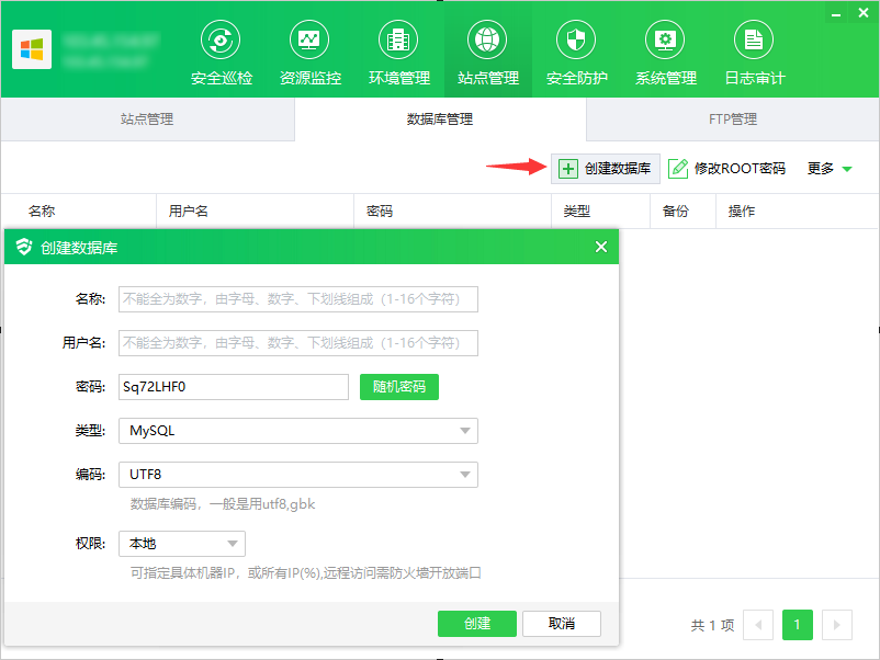 我一般是通过云帮手进行数据库的创建的,简单说一下步骤吧,首先先进行环境部署,安装了MySQL之后,就可以在站点管理中对数据库进行管理了。