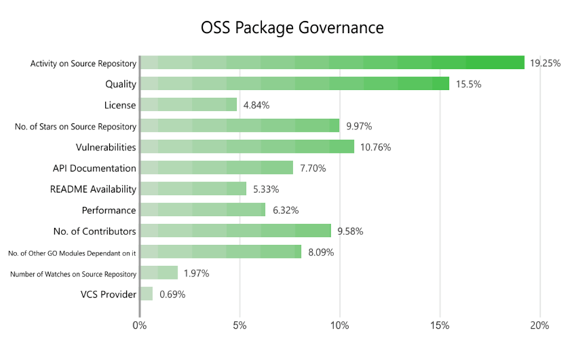 大多数报告显示人们偏好用他人使用最多的包,以及流行度所带来的保证。同时安全漏洞也是一个问题,开发人员如何确定一个包的风险在各种各样的条件下是不同的,如内网环境和外网环境同一个漏洞的处理可能是不一样的。