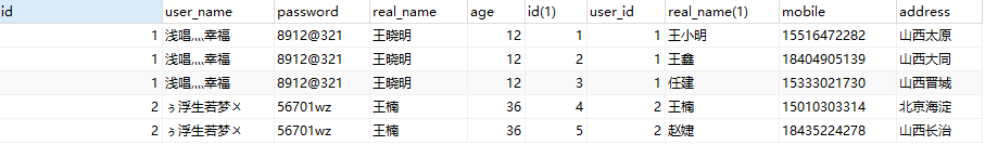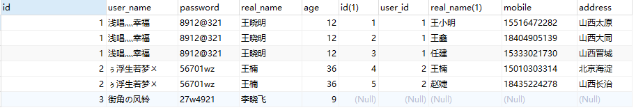 select ui.*,ad.* from user_info as ui,address as ad where ad.user_id=ui.id