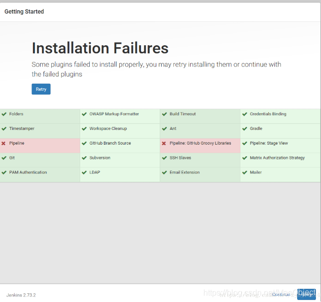 安装:sudo rpm -ih jenkins-2.73.2-1.1.noarch.rpm