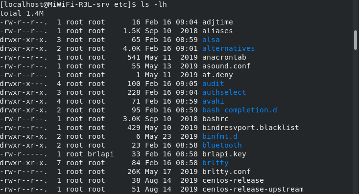 拿这张图来说,权限就是第一列的drwxr-xr-x,我这样表示:[d][rwx][rwx][rwx] 第一位(-代表二进制文件,l代表软连接文件,d代表目录) [rwx]代表所有者权限,[r-x]代表所属组的权限,最后一个[r-x]代表其他人的权限 其中rwxrwxrwx代表最大权限,---------代表没有权限,而rwx又分别代表可读可写可执行,后面说到权限管理的时候在仔细说,先简单了解一下