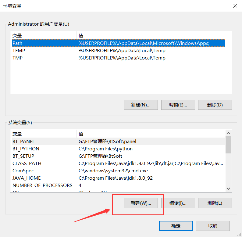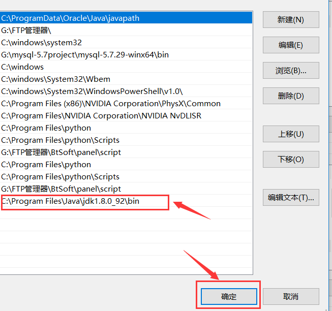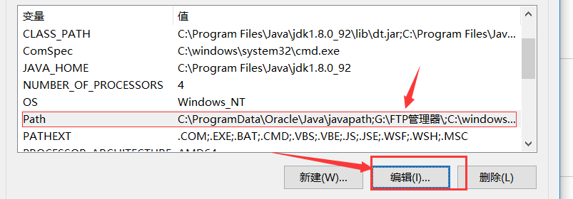 2.2创建PATH环境变量(如果有点击编辑,然后在PATH里新建一个变量,变量值是JDK文件夹下的bin文件夹地址)