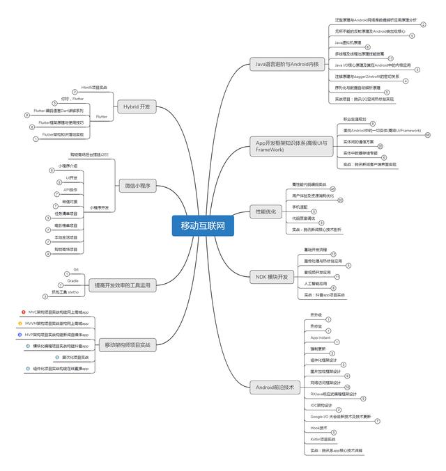 - 掌握Android 四大组件知识,深入了解相关生命周期,对于Application、Fragment、Intent常见的开发知识也必须掌握。