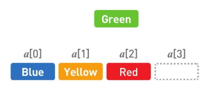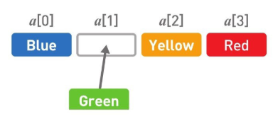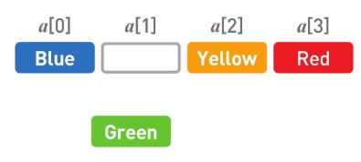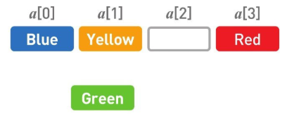 但是,如果想在任意位置上添加或者删除数据,数组的操作就要比链表复杂多了。这里我们尝试将 Green 添加到第 2 个位置上。