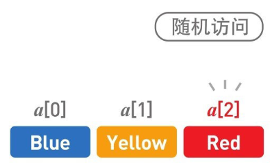 比如现在我们想要访问 Red,如果是链表的话,只能使用指针就只能从头开始查找,但在数组中,只需要指定 a[2],便能直接访问 Red。