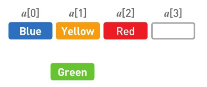 为了给新数据 Green 腾出位置,要把已有数据一个个移开,首先把 Red 往后移。