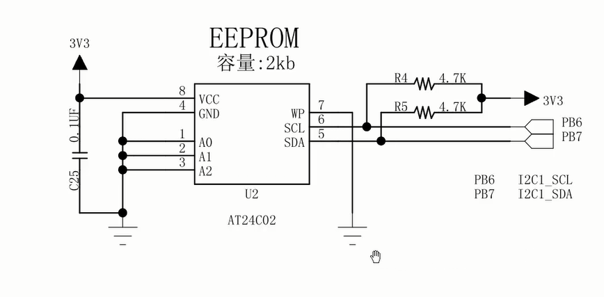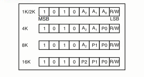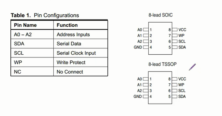 A0、A1、A2:3个地址位为整个7位地址的后三个地址,注意这里的前四位地址已经被固定成1010了即0xa,剩下的三位由这三位控制