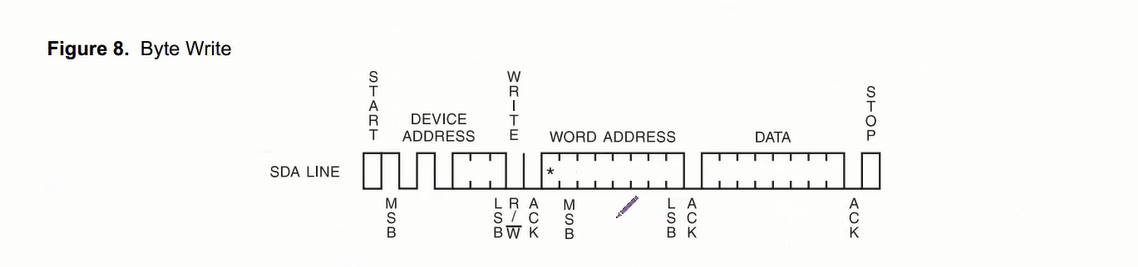 WORD ADDRESS:选择将要写入的地址,也就是从AT24C02的哪一个位置来写,区别于前面的设备地址