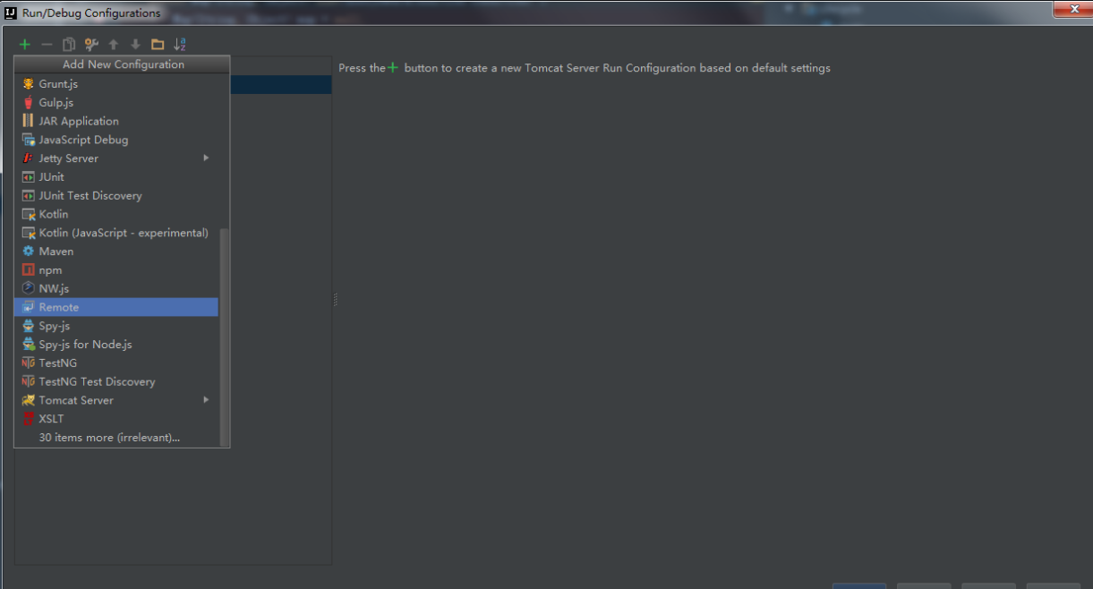 添加一个新配置,选择 Remote,如下图所示: