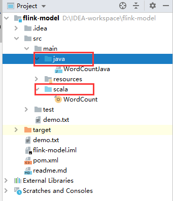在src.main目录下增加scala源目录,最终目录结构如下: