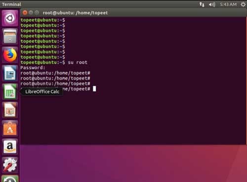 登录进 Ubuntu 系统,输入“ctrl+alt+t”,打开超级终端,使用“su root”
