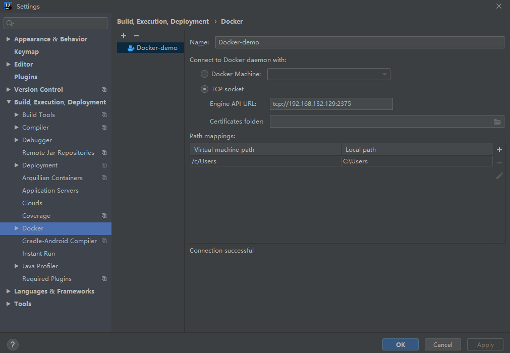 注:如果连接不成功,看Docker开启远程访问没有,没有则配置如下