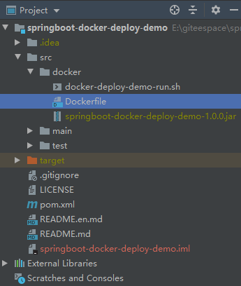 在src下创建docker文件夹,新建Dockerfile文件,如下图