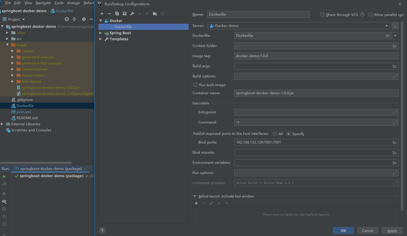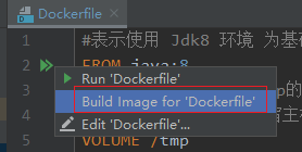 7、创建docker 镜像,点击dockerfile中的“Build Image for Dockerfile”