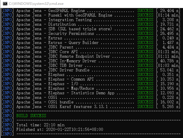 3、在D:\project\java\jena2\jena-3.13.1目录执行cdm命令:mvn -Dmaven.test.skip=true package