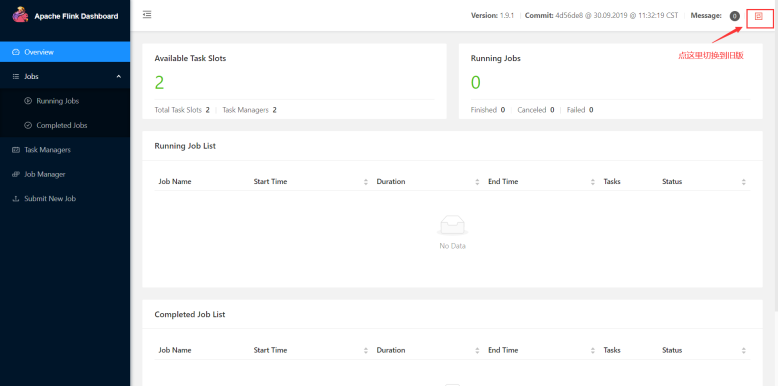 Flink社区讨论了现代化 Flink WebUI 的提案,决定采用 Angular 的最新稳定版来重构这个组件。从Angular 1.x 跃升到了 7.x 。重新设计的 UI 是 1.9.0 的默认UI,不过有一个按钮可以切换到旧版的WebUI。