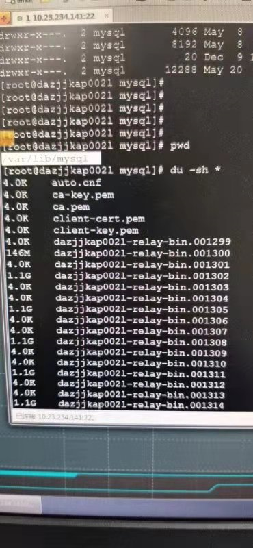 问题定位从库主键冲突 导致从库的SQL线程停止,但是IO线程正常,从主库上复制过来的SQL没有及时在从库还原,导致越来越占磁盘!!!