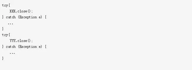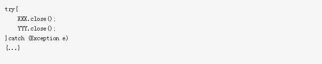 虽然有些麻烦,却能避免资源泄露。我想,如果没有修改过的代码,万一XXX.close抛异常了,那么就进入了cath块中了,YYY.close不会执行,YYY这块资源就不会回收了,一直占用着,这样的代码一多,是可能引起资源句柄泄露的。而改为上面的写法之后,就保证了无论如何XXX和YYY都会被close掉。