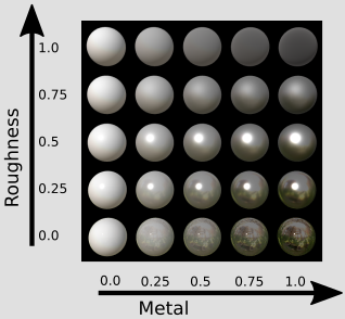 基色、金属和粗糙度属性可以作为单个值给出,然后应用于整个对象。为了给物体表面的不同部分赋予不同的材质属性,这些属性也可以以纹理的形式给出。这使得它有可能建模的现实世界的材料与现实的外观广泛。