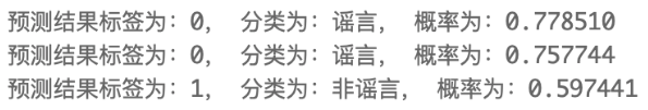 前面已经进行了模型训练,并保存了训练好的模型。接下来就可以使用训练好的模型进行谣言检测了。