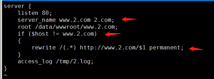 - 这里判断访问请求不等于 www.2.com 的时候