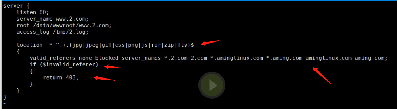- 下面的 if 语句是不符合以上referers 的访问请求就会执行