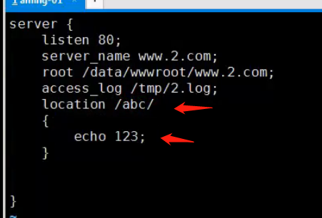 - 如图,使用 location /abc/ { echo 123; }