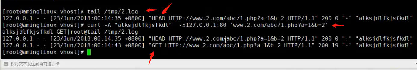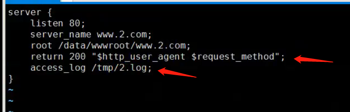 - 配置文件设置访问日志,access_log /tmp/2.log