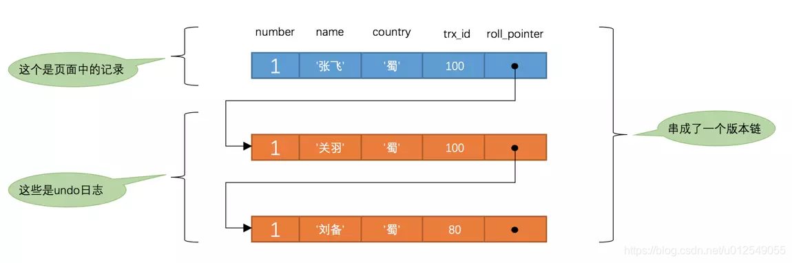 .首先要了解,每次对某个记录进行修改,会记录一条该事务对应的undo日志,从而形成版本链.