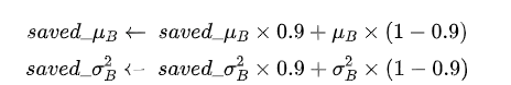 在训练过程的最开始将和设置为0,每次输入一批新的样本,计算出和,然后通过上面的公式更新和,在训练的过程中不断的更新它们的值,并作为BatchNorm层的参数保存下来。预测的时候将会加载参数和,用他们来代替和。