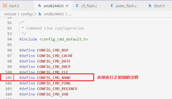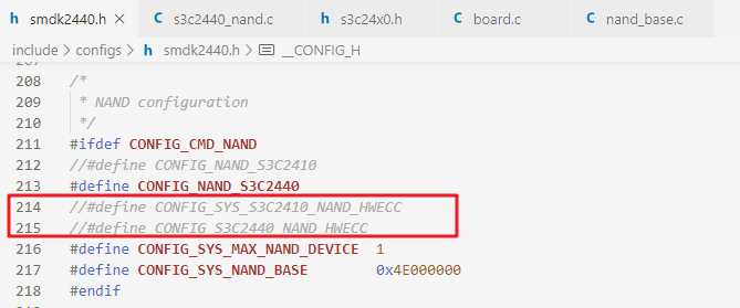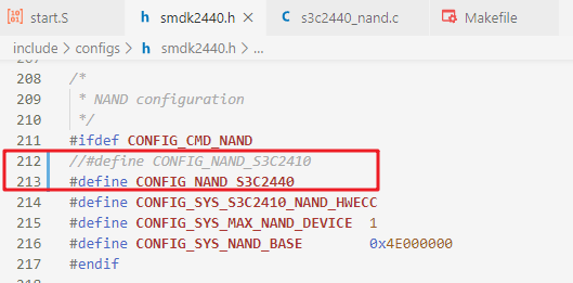 再去单板配置文件include/configs/smdk2440.h中配置宏定义CONFIG_NAND_S3C2440: