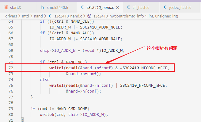 这个指针有问题的话,就是nand这个结构体变量的定义问题,找到nand变量的定义: