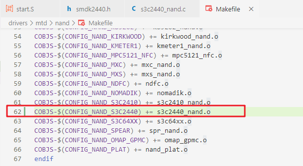修改该目录下的makefile文件,将s3c2440_nand.c文件加入编译: