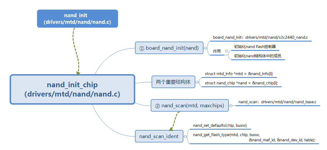 至此,是不是对nand_flash的整套操作框架有所了解了?可以画出这样一个调用关系图,帮助理解: