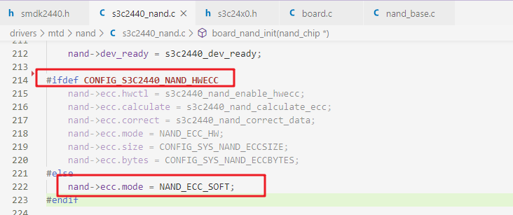 这部分代码是使用宏定义CONFIG_S3C2440_NAND_HWECC来控制的: