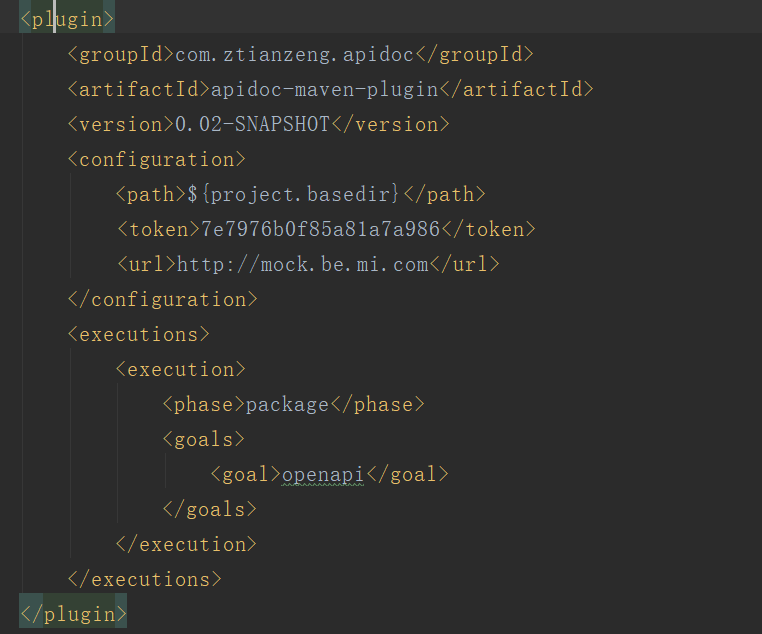 <dependency> <groupId>com.xiaomi.mina.apidoc</groupId> <artifactId>apidoc-autoconfig</artifactId> <version>0.02-SNAPSHOT</version> </dependency>