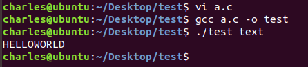 首先我们编译第一个程序生成可执行程序upper,然后再创建一个文本文件text,里面内容为helloworld,然后我们运行程序a,得到下面的运行结果: