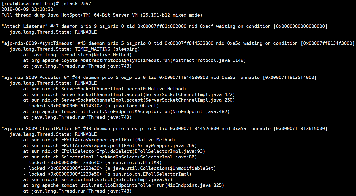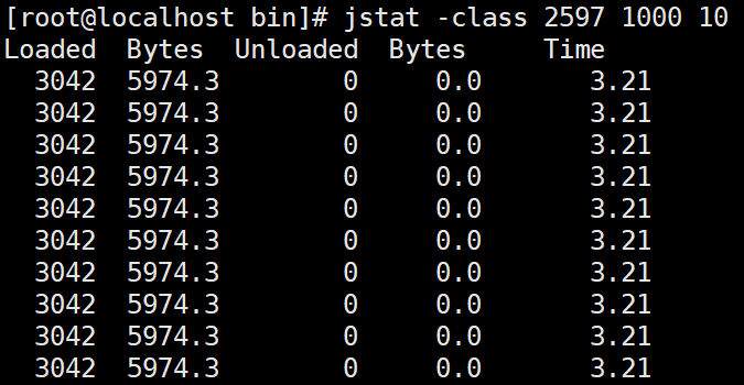 jstat -class PID 1000 10 查看某个java进程的类装载信息,每1000毫秒输出一次,共输出10 次