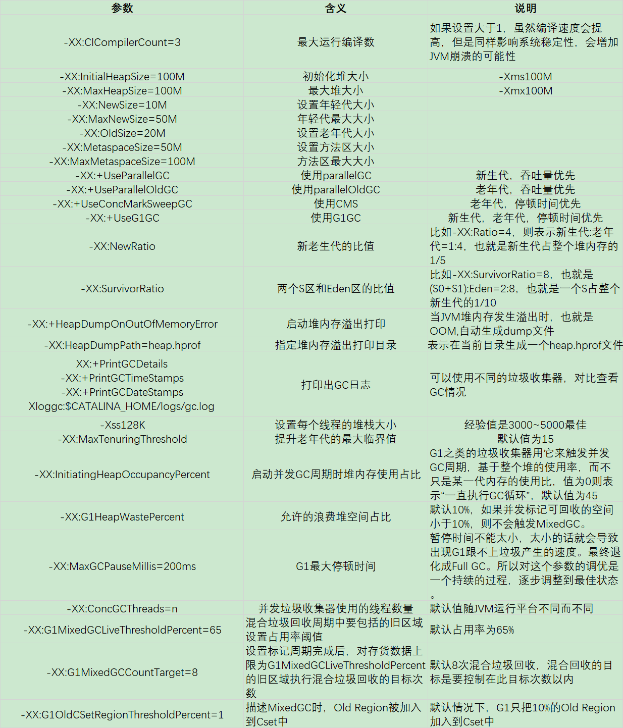 格式:-XX:\[+-\]<name> +或-表示启用或者禁用name属性