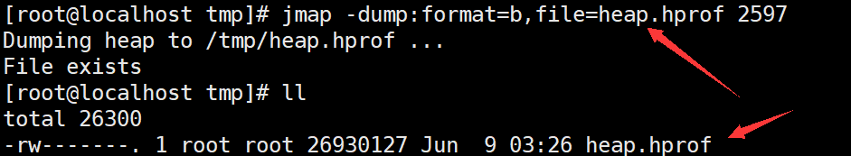 `jmap -dump:format=b,file=heap.hprof 44808`