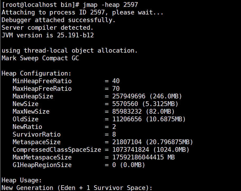 `jinfo -flag name PID 查看某个java进程的name属性的值`