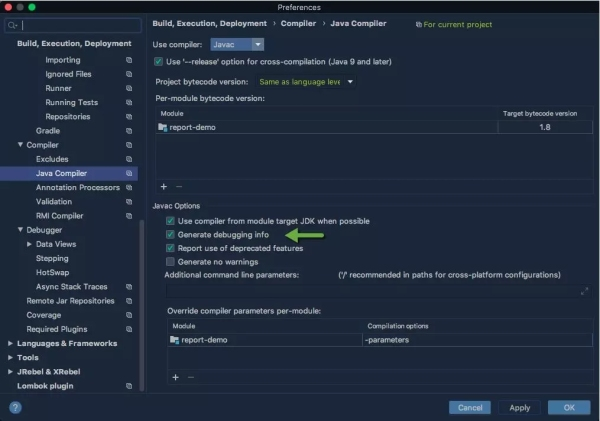 要想在开发阶段让字节码又香又有用,可以直接使用参数-g开启所有调试信息。IDEA可以在编译选项里对这个参数进行开启。有很多同学在编译之后的代码里找不到局部变量的符号表,也是由于这个参数没有开启所引起的。