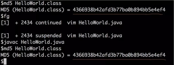 在验证之前,我们先看一下当前的class文件md5值。