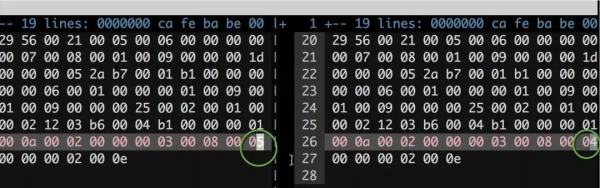 使用hexdump命令分析两次生成的字节码,发现其中只不过变了一个数字。