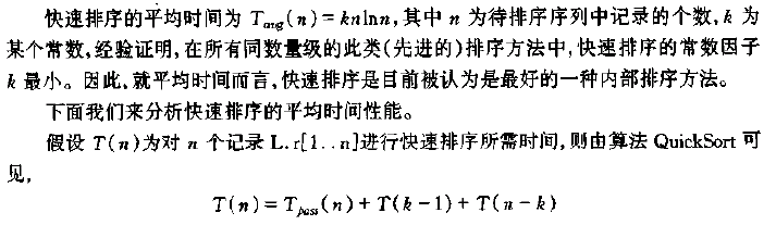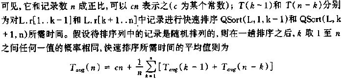 其中,Tpass(n)为对n个记录进行一趟快速排序Partition(L,1,n)所用的时间,从算法