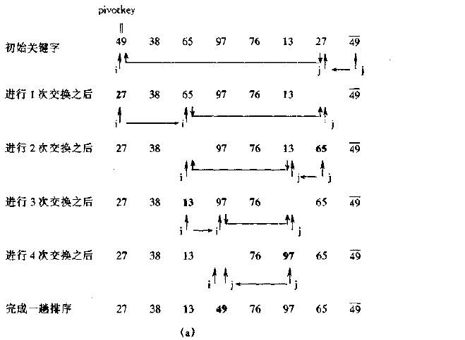 在一趟快速排序中,整个过程交替地从后往前扫描关键字值小的记录和从前往后扫描关键字值大的记录并放置到对应端空出的位置中,又空出新的位置。当从两个方向的扫描重合时,即i=j,就找到了基准记录的存放位置。