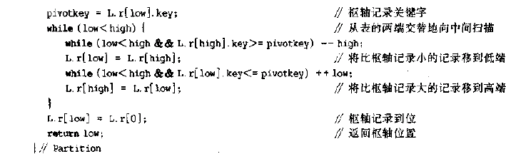while(low<high&&L.r[low].key<=pivotkey)++low;