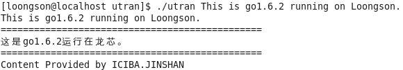 可以将英文翻译成汉语。例如,输入“This is go1.6.2 running on Loongson.”的执行情况如下:
