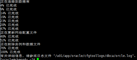 dbca -silent -deleteDatabase -sourcedb orcle -sid orcle