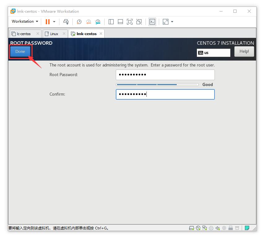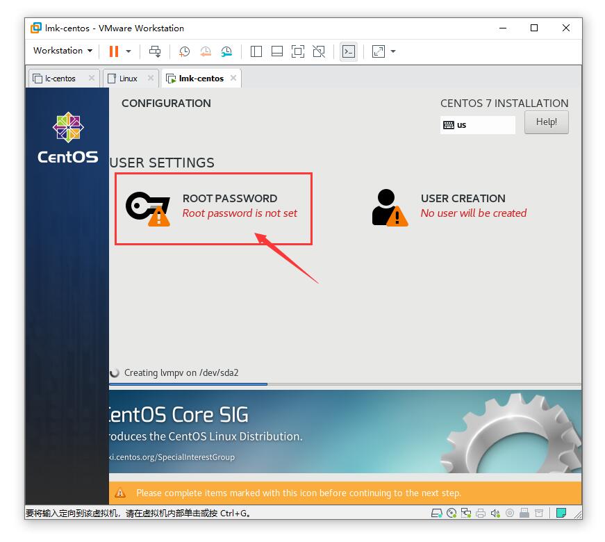 回到用户界面,继续点击【ROOT PASSWORD】选项,为 root 用户设置初始密码: